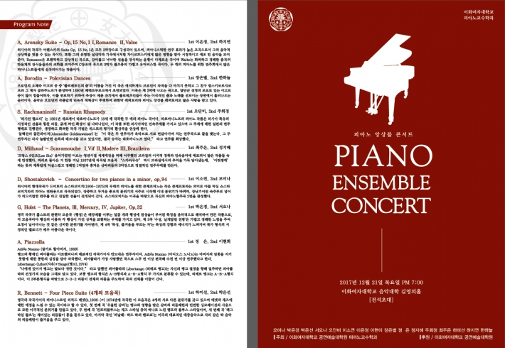 이화여자대학교 음악대학 김영의 홀 에서 하지연원장선생님의 피아노 콘서트가 예정되어있습니다^^~~