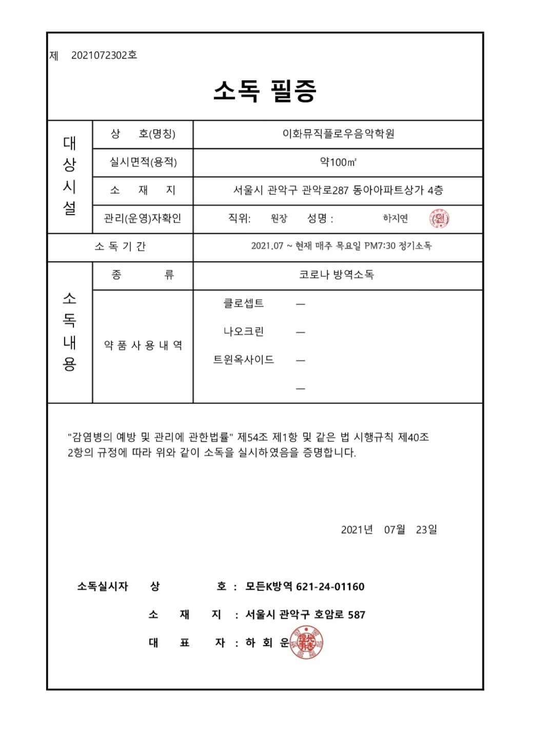 더욱 안심하고 아이들을 보내실 수 있는 이화뮤직플로우가 되겠습니다🎶💖