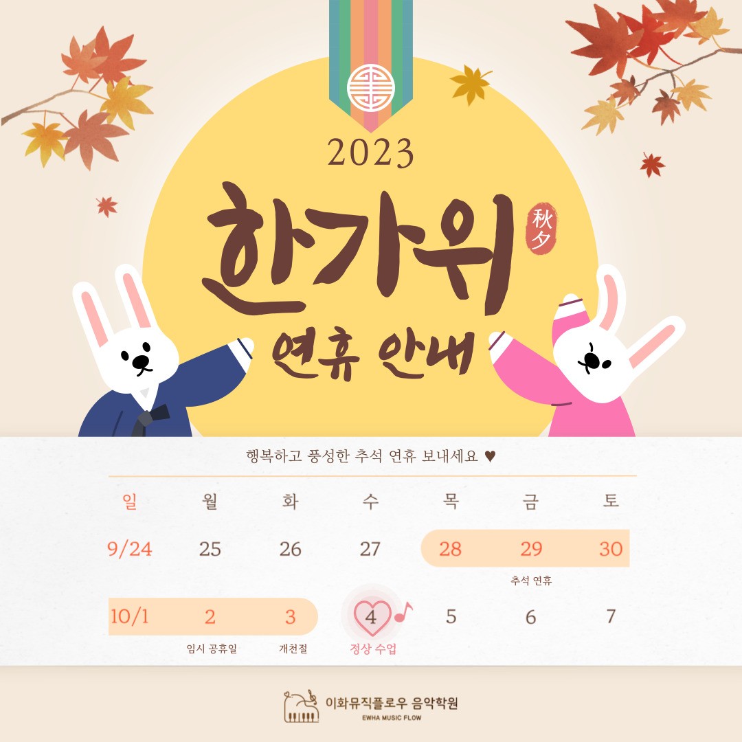 추석 연휴로 원 내 모든 수업은 쉬어갑니다 :)