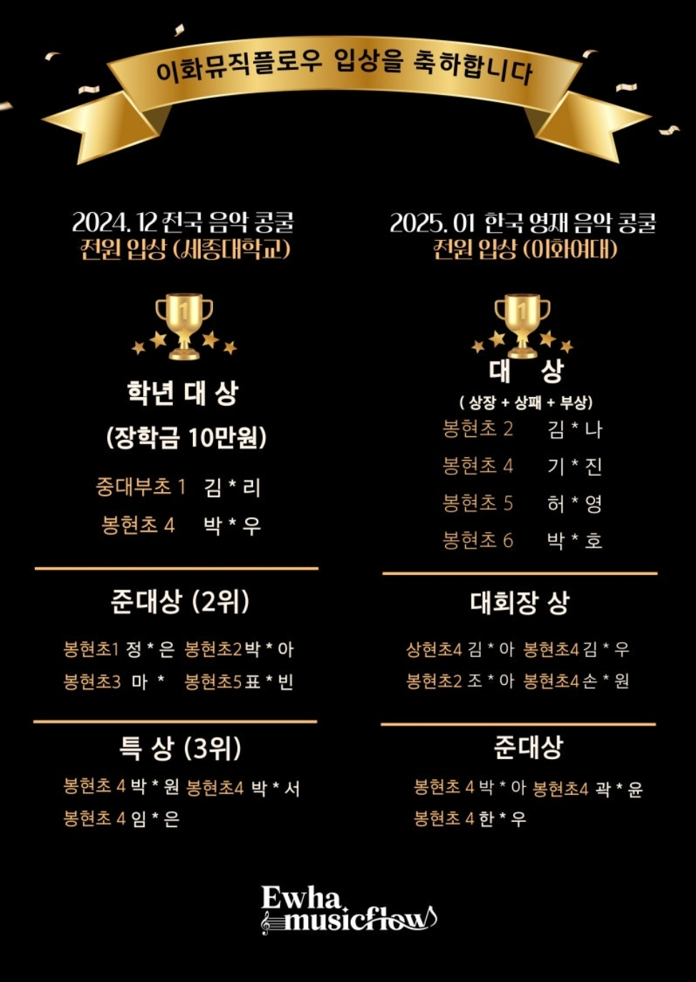 전국음악콩쿨 수상을 축하합니다!